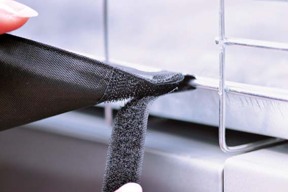 Snabb montering med elastiska band på sidorna som fästs i lastöglor eller runt bagageremsor.
