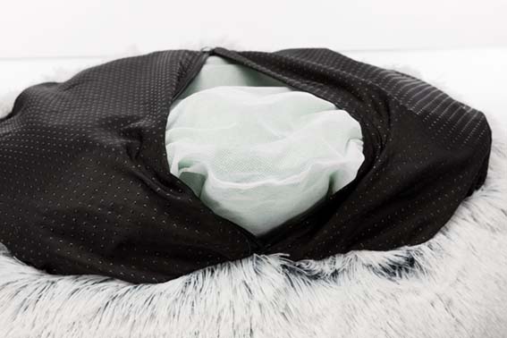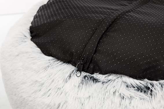 - Maximal mjukhet och komfort: Långhårig plysch tillsammans med mjuk polyesterfyllning gör bädden extra inbjudande. Din hund kan sjunka ner och slappna av.